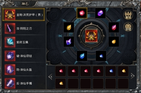 当我们不在满足于身上装备的属性时,可以通过镶嵌神石来提高我们的属性。每个装备可以镶嵌8个不同属性的神石。