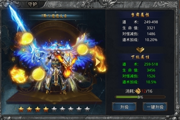 守护提升等级可以获取基础攻击生命值以及对怪减伤的属性,除此之外还会百分比提升所有途径获得的攻击加成。