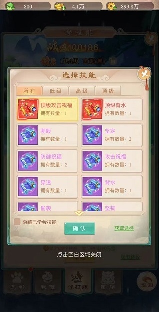 学技能可以提升宠物的战力,提升战斗回合时的伤害。需要用到高级必杀技能书,这个可以通过经验升级等级获取。