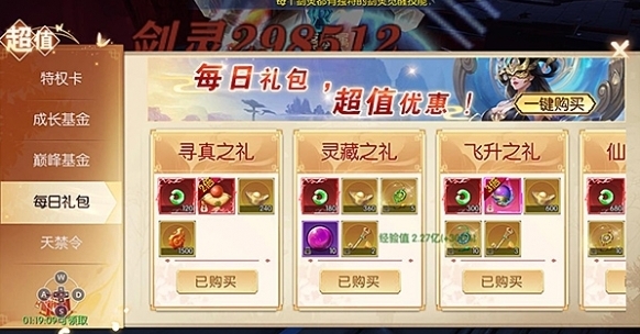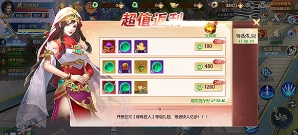 每日礼包里面所售卖的道具也是非常不错的,最值得注意的是鸿蒙仙药神(1天2倍经验丹)和鸿蒙仙药仙(30分钟3倍经验丹)。而其他的道具其实也不错,比如元宝等对于后面的坐骑、宠物和战力榜也是有挺大的作用的,所以也是需要购买的。