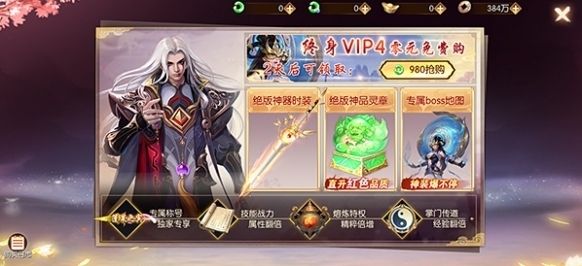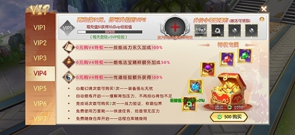 无论是什么类型的游戏,VIP都是一个至关重要的东西。这在这里,VIP4能提供100%的传道经验加成,同时游戏中的副本次数也会增加。而这样的特权在游戏前期就会产生出很大的优势,从而在前期就能拉开很大的差距了