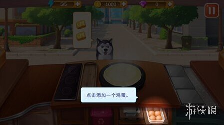 7、待煎饼煎熟后,点击添加一个鸡蛋。