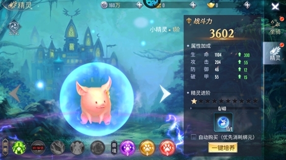 5、精灵系统:小小精灵伴你成长,打怪辅助好帮手。