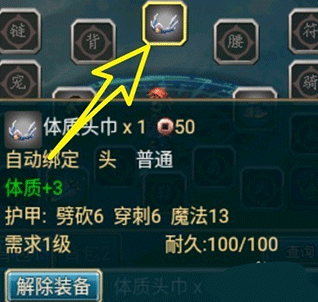 4、我们就可以在角色的属性栏里看到已经装好的道具,并获得了装备提供的属性,提升了英雄的实力。