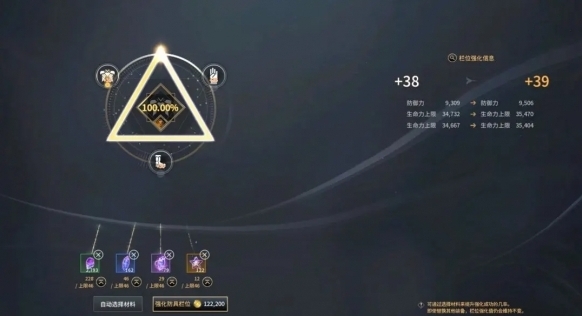 2、 防具栏强化:防具材料获取难度较高,建议100%成功率进行强化