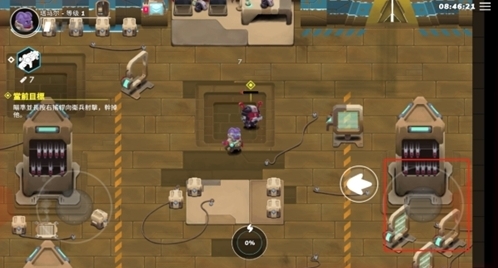 7、拾取武器后,游戏界面右侧的圆盘将发挥作用,点击可以发射子弹攻击敌人,滑动可以调整攻击方向;
