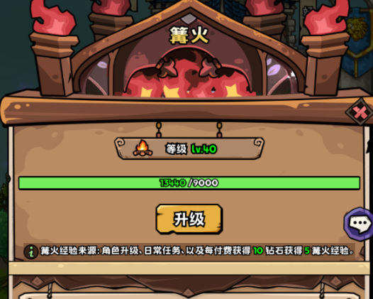 1、角色升级、日常任务、以及每付费获得10 钻石获得5 篝火经验。